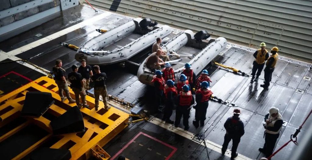 Horas antes del acuatizaje o amerizaje, equipos de rescate estuvieron atentos y dispuestos para buscar a los astronautas en la cápsula Orion. (Fuente de esta imagen referencial: EFE/EPA/JOEL KOWSKY/NASA)
