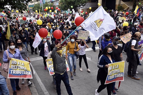 DOBLE LLAVE – Las protestas del miércoles 28 de abril en Colombia, que llevaron a las calles a decenas de miles de personas descontentas con la reforma fiscal presentada por el gobierno al Congreso, dejaron dos muertos, 26 detenidos y 44 policías heridos, así como daños materiales por acciones vandálicas, según informaron las autoridades y los medios al amanecer de este jueves 29.