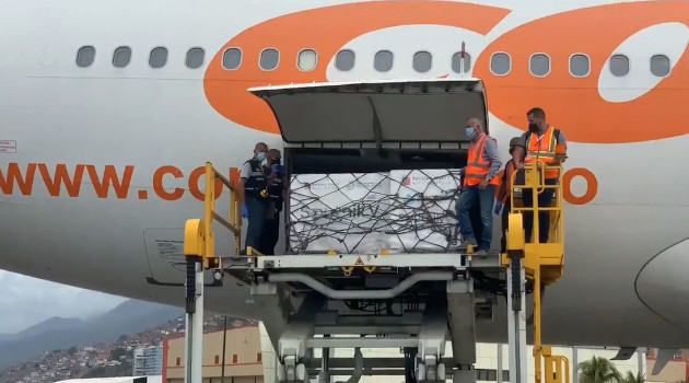 La encomienda arribó en un avión del estatal Consorcio Venezolano de Industrias Aeronáuticas y Servicios Aéreos (Conviasa).