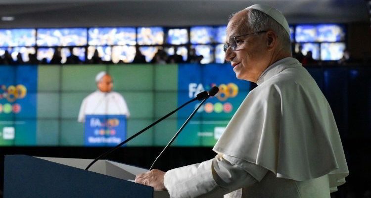 -León XIV, en su mensaje pronunciado en la sede la FAO, también subrayó que, a pesar de los avances tecnológicos y científicos, 2.300 millones de seres humanos no pueden acceder a una alimentación adecuada, enfatizando que no son cifras, son vidas truncadas, calificando la situación de fracaso colectivo, extravío ético y culpa histórica, y que la erradicación del hambre no puede limitarse a declaraciones solemnes, sino que requiere una voluntad real y sostenida.